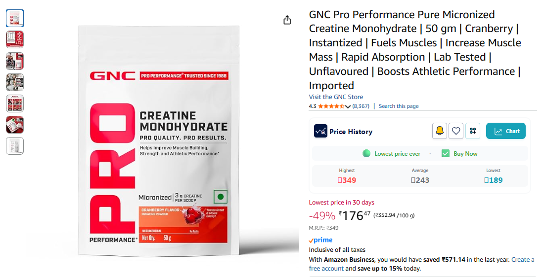 GNC Pro Performance Pure Micronized Creatine Monohydrate | 50 gm | Cranberry | Instantized | Fuels Muscles | Increase Muscle Mass | Rapid Absorption | Lab Tested | Unflavoured | Boosts Athletic Performance | Imported.