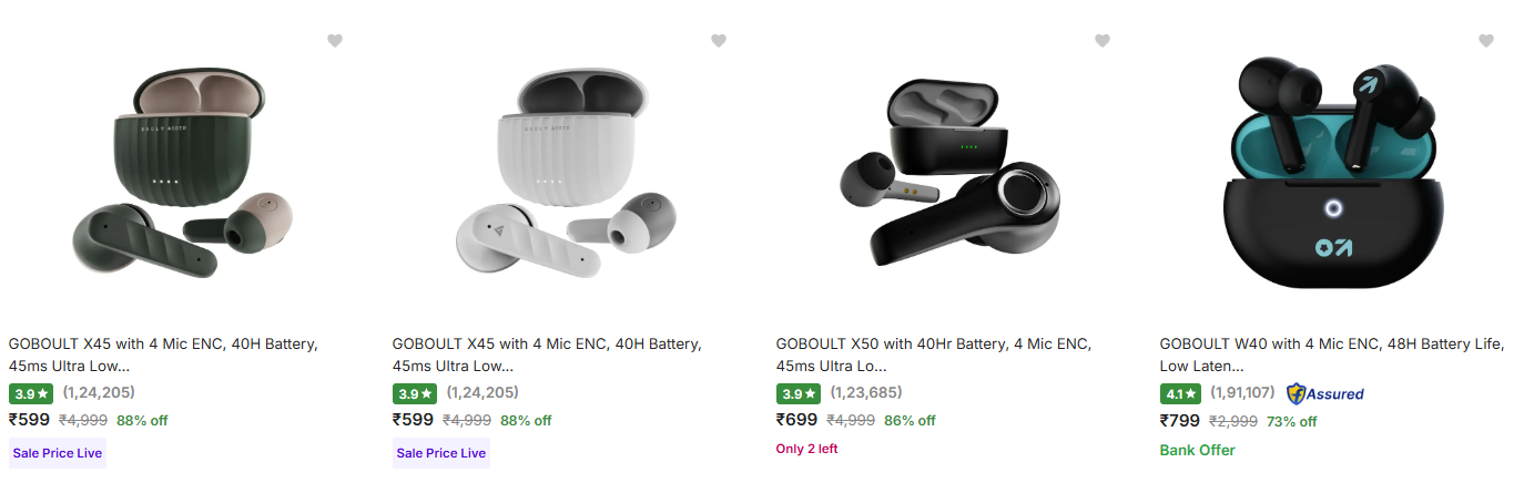 Goboult True Wireless Earbuds upto 88% Discount is available on Flipkart.