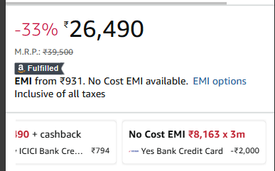 Incl.₹4250 Off Axis Bank CC EMI + ₹1500 Coupon