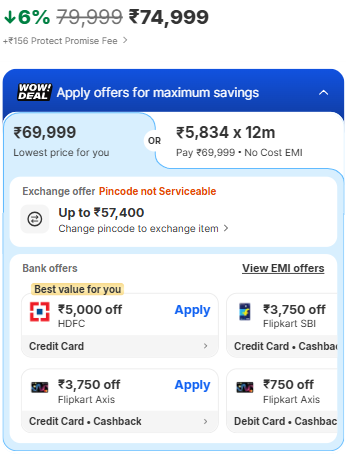 Apply ₹6000 Coupon+ Extra Bank Offer Available
