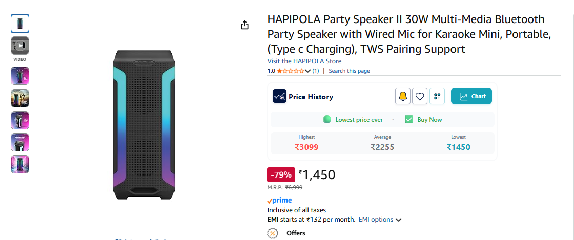 HAPIPOLA Party Speaker II 30W Multi-Media Bluetooth Party Speaker with Wired Mic for Karaoke Mini, Portable,(Type c Charging), TWS Pairing Support