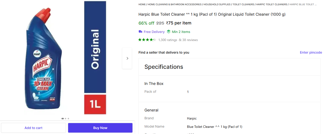 Harpic Disinfectant Original Liquid Toilet Cleaner Original Liquid Toilet Cleaner (1L) Original Liquid Toilet Cleaner (1000 ml)