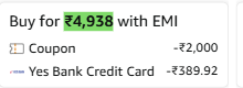 Incl. ₹389 off with Yes Bank CC + 2000 cupon
