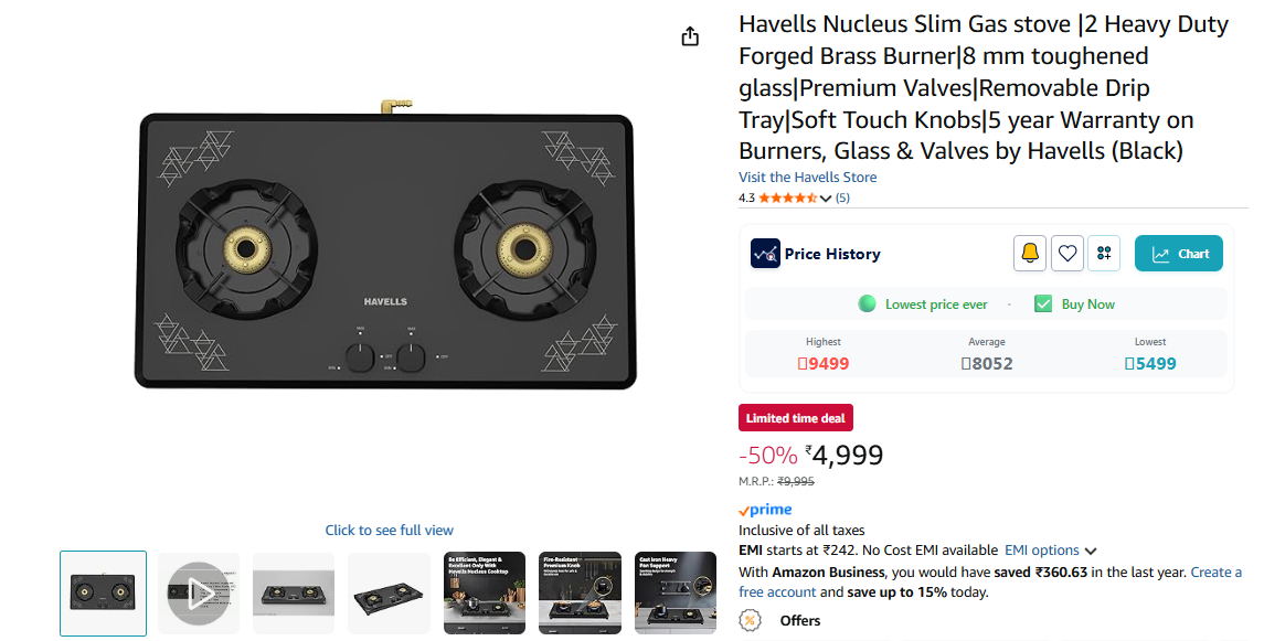 Havells Nucleus Slim Gas stove | 2 Heavy Duty Forged Brass Burner|8 mm toughened glass|Premium Valves|Removable Drip Tray|Soft Touch Knobs|5 year Warranty on Burners, Glass & Valves by Havells (Black).