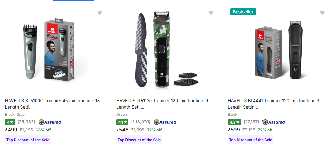 Havells Trimmers upto 72% Discount | Starting at ₹499 is available on Flipkart.