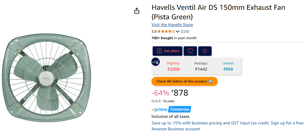 Havells Ventil Air DS 150mm Exhaust Fan (Pista Green)