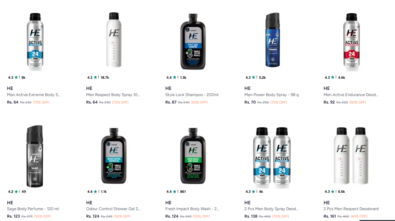 He Body Spray Deodorant starting @ ₹64