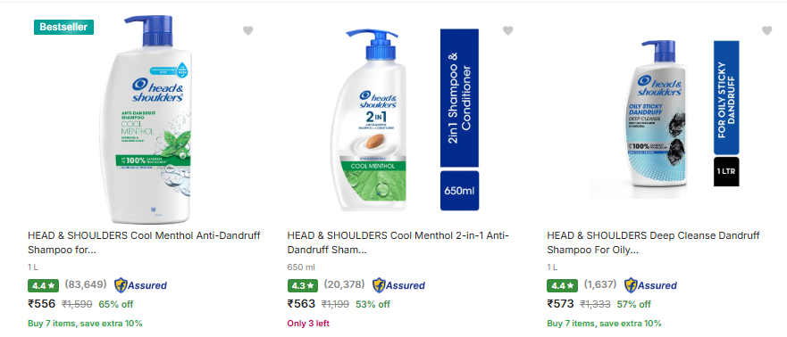Head Shoulders Shampoo @ Up to 65% Discount, Available on Flipkart.