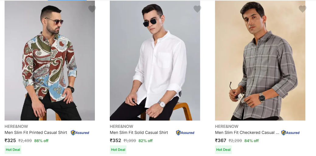 Here & Now Men's Casual Shirts upto 86% Discount available online in India on Flipkart. This deal was updated by @radhika on 21st March, 2026 at 12:17 PM.