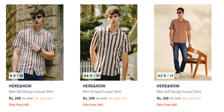 Here & Now Men's Shirts at minimum 80% Discount available online in India (80% discount from MRP) on Myntra. Discount: 80%. This deal was updated by @radhika on 19th October, 2025 at 8:31 AM.