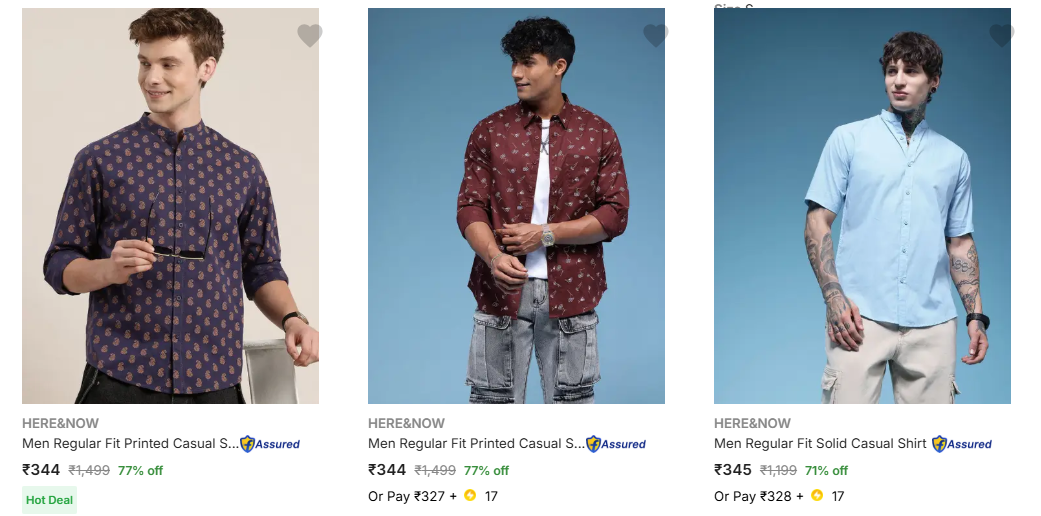 Here & Now Men's Casual Shirts upto 77% Discount is available on Flipkart.