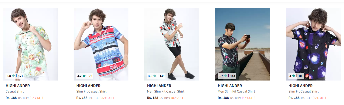 HIGHLANDER Men's Casual Shirt up to 82% discount is avaible on myntra