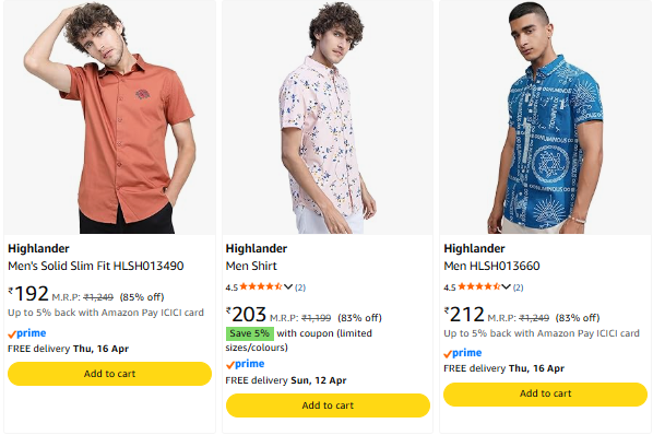 Highlander Men's Shirt @ Upto 85% Discount