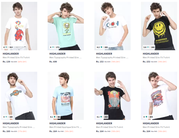 HIGHLANDER Men T-shirt At Starting @ ₹139 Is Available On Myntra