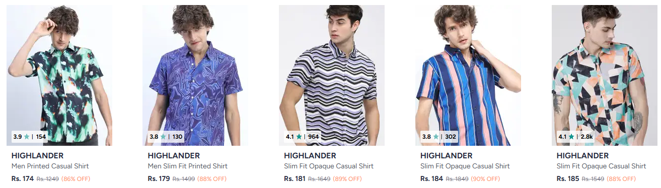 HIGHLANDER Men's Shirt Starting @ ₹174