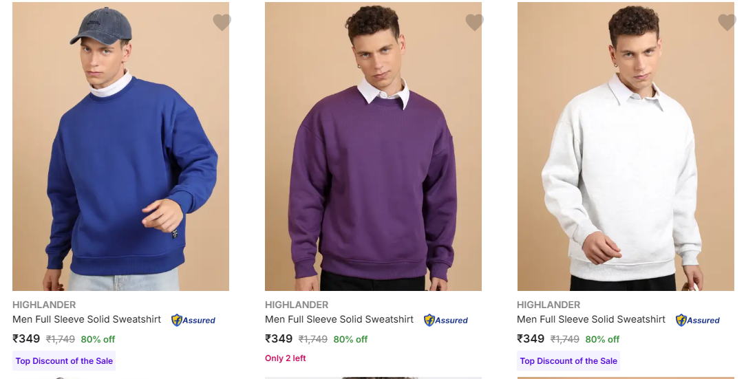 Highlander Men's Sweatshirts upto 80% Discount available online in India on Flipkart. This deal was updated by @radhika on 06th October, 2025 at 10:02 AM.