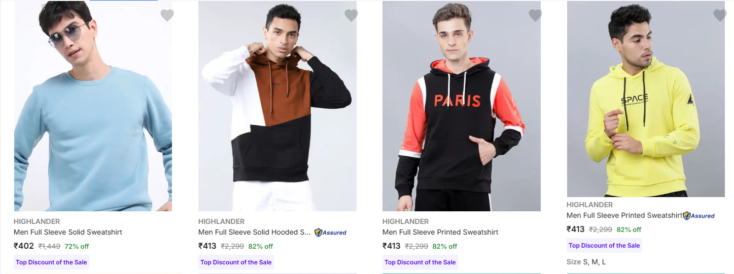 Highlander Men's Sweatshirts upto 82% Discount is available on Flipkart.