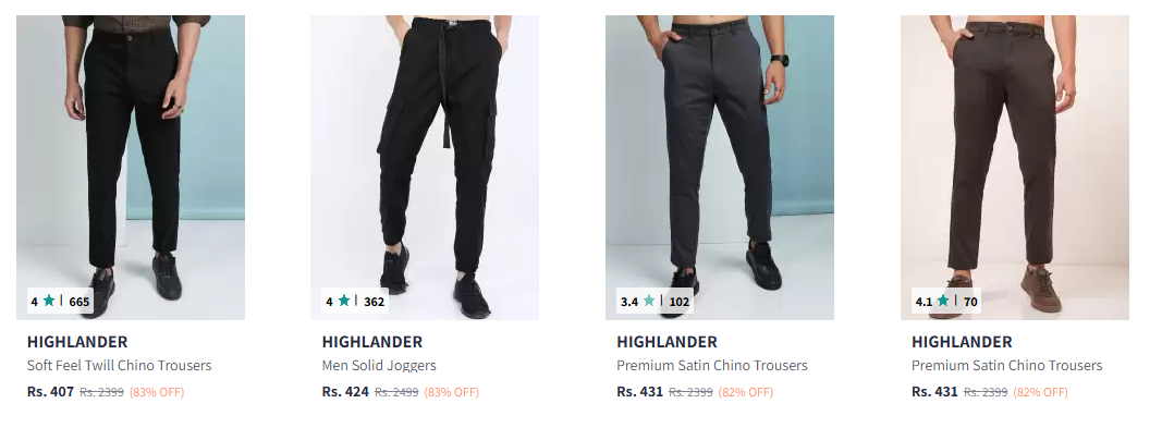 highlander mens trouser Minimum 80% Discount is Available on Myntra
