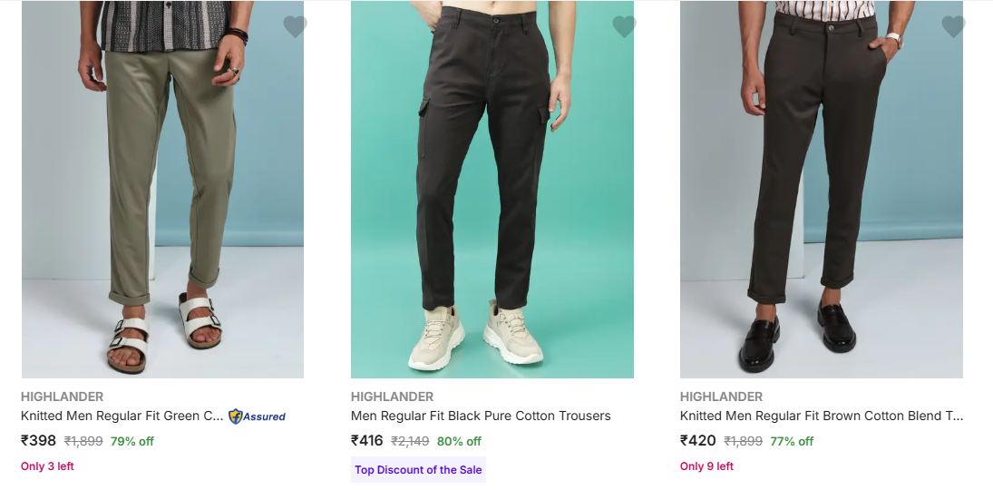 Highlander Men's Trousers upto 80% Discount is available on Flipkart.
