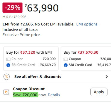 incl. ₹4000 Coupon + ₹3600 off with HDFC Bank C C