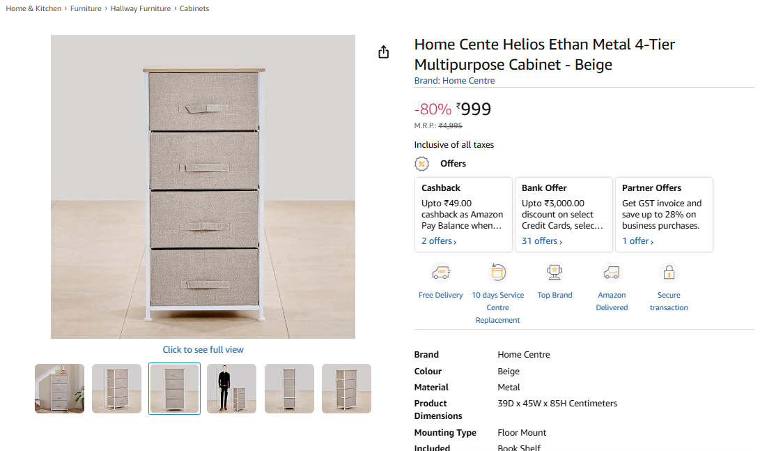 Home Cente Helios Ethan Metal 4-Tier Multipurpose Cabinet - Beige.