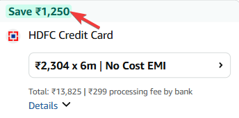 Incl.₹1250 off HDFC Bank CC With EMI