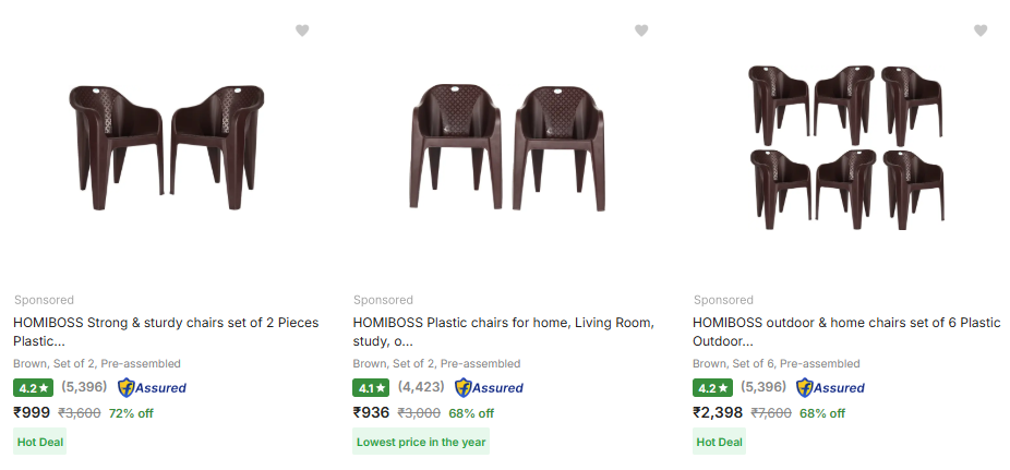 Homiboss Outdoor Chairs @ Up to 72% Discount, Available on Flipkart.