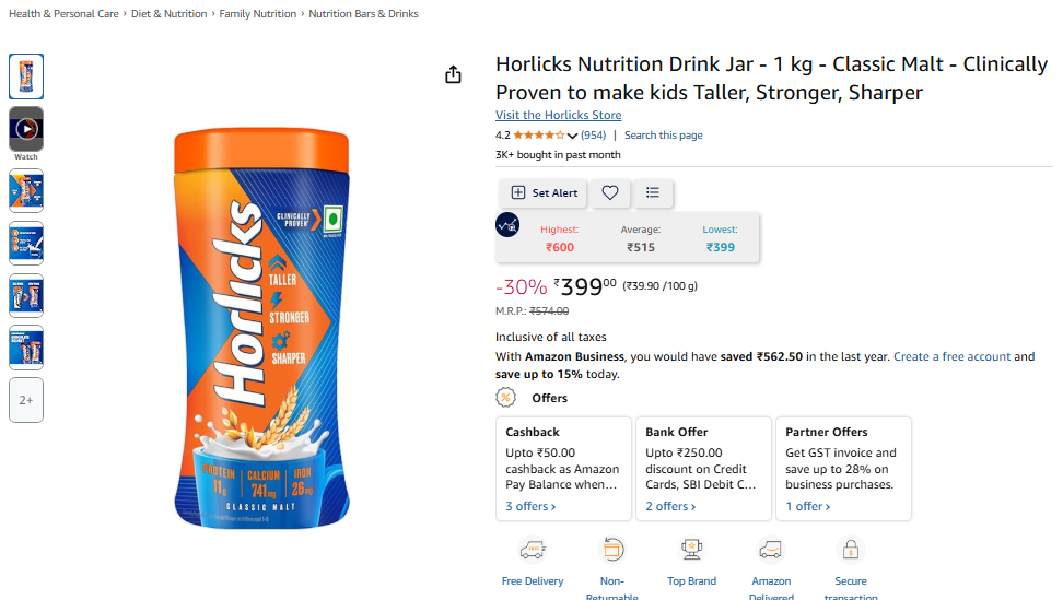 Horlicks Nutrition Drink Jar - 1 kg - Classic Malt - Clinically Proven to make kids Taller, Stronger, Sharper.