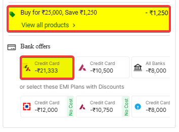 | (-) 💳 Use Flipkart Axis Bank Credit Card | (₹21,333) |