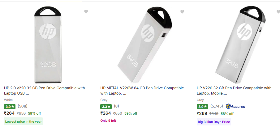 Hp Pen Drives Starting @ ₹264 on Flipkart.