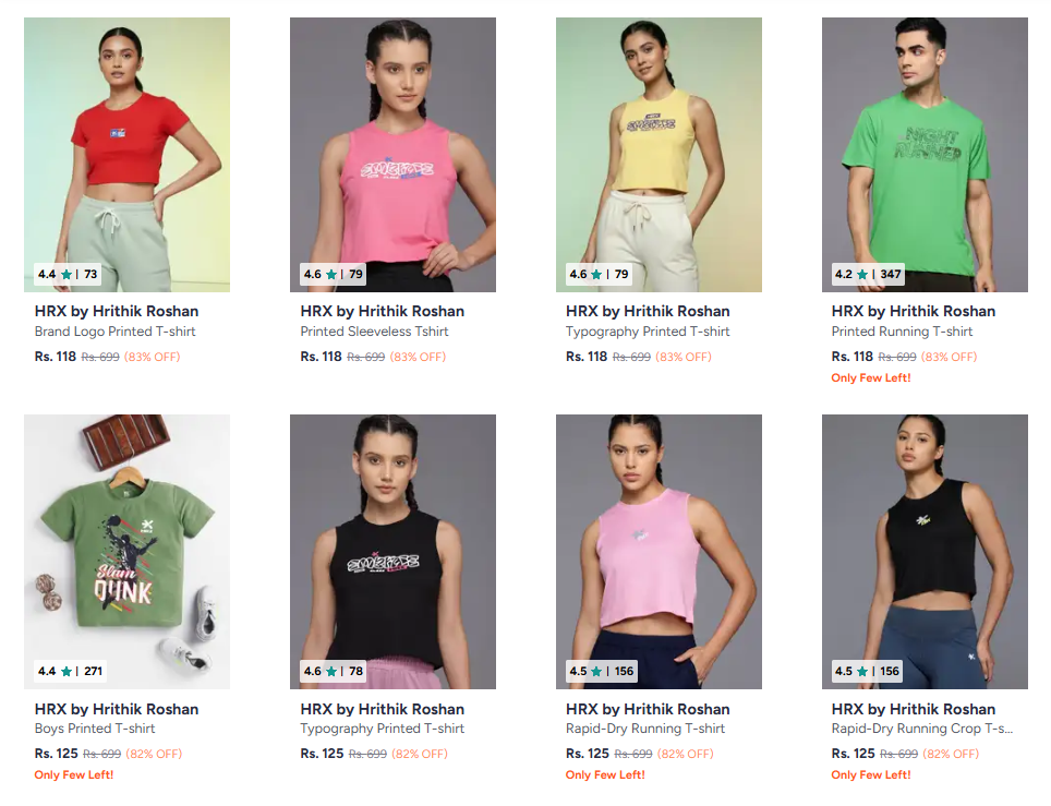 HRX by Hrithik Roshan T-shirt Starting at ₹118