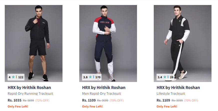 Hrx By Hrithik Roshan Men's Tracksuits at minimum 70% Discount