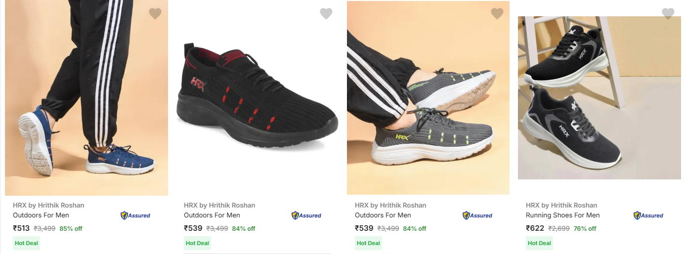 HRX by Hrithik Roshan Men's Shoes upto 85% Discount is available on Flipkart.