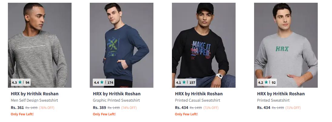 HRX by Hrithik Roshan Men's Sweatshirts upto 76% Discount is available on Myntra.