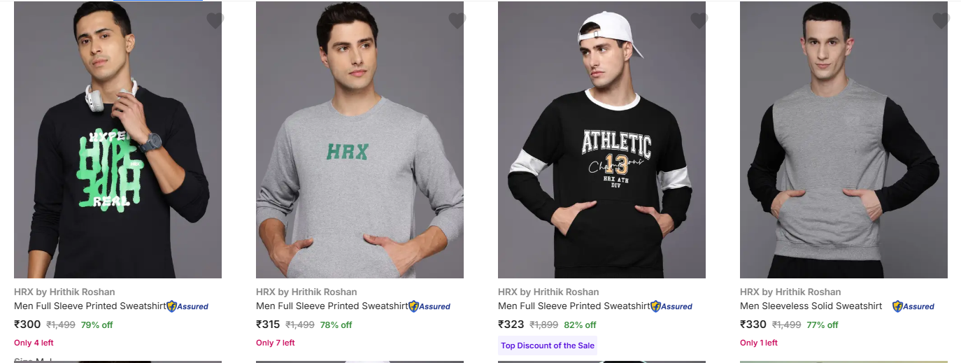 Hrx By Hrithik Roshan Men's Sweatshirts upto 82% Discount is available on Flipkart.