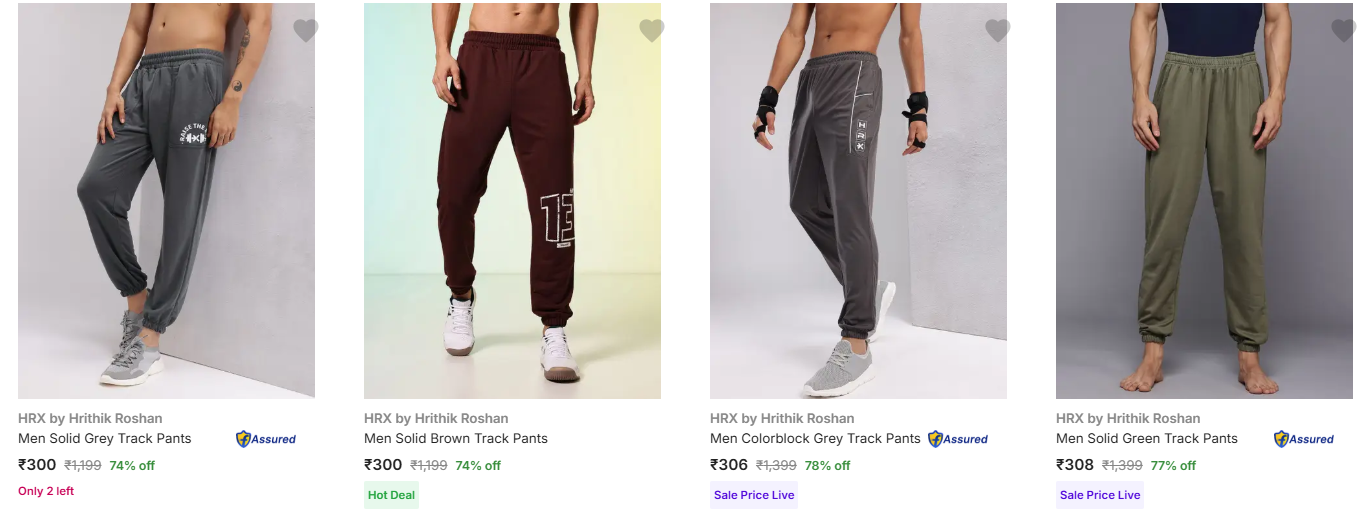 Hrx By Hrithik Roshan Men's Track Pants upto 78% Discount is available on Flipkart.