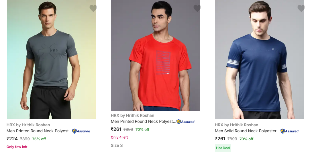 Hrx By Hrithik Roshan Men's T-Shirts at minimum 70% Discount available online in India (70% discount from MRP) on Flipkart. Discount: 70%. This deal was updated by @radhika on 25th October, 2025 at 5:37 PM.