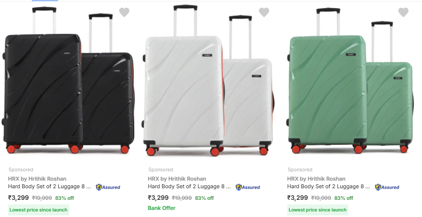 HRX by Hrithik Roshan Brand Suitcases (Set of 2) @ Minimum 80% Discount, Available on Flipkart.