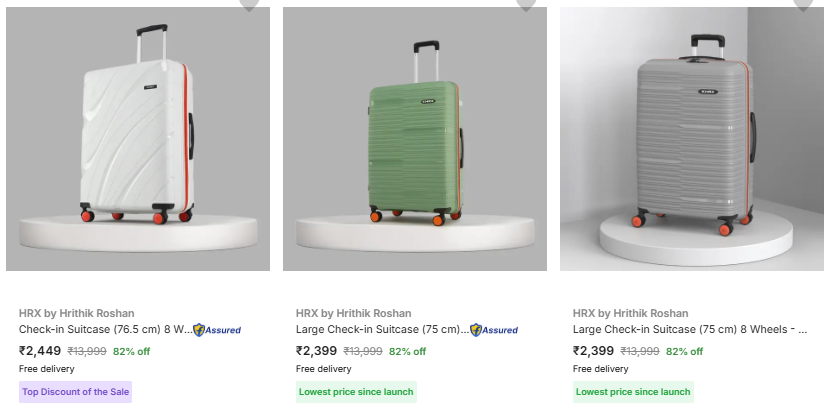 HRX by Hrithik Roshan Suitcases (Large) @ Minimum 80% Discount, Available on Flipkart.