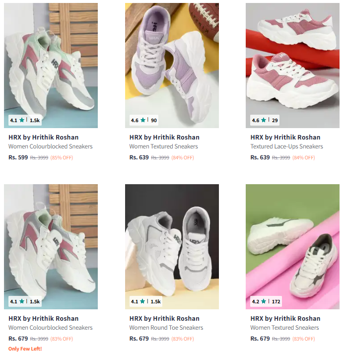 HRX by Hrithik Roshan Women's Shoes @ Minimum 80% Discount, Available on Myntra.