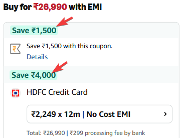 Incl.₹4000 off HDFC Bank CC EMI + ₹1500 Coupon