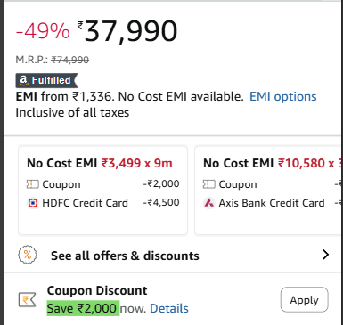 Incl. ₹4500 off HDFC Bank CC + Apply ₹2000 Coupon