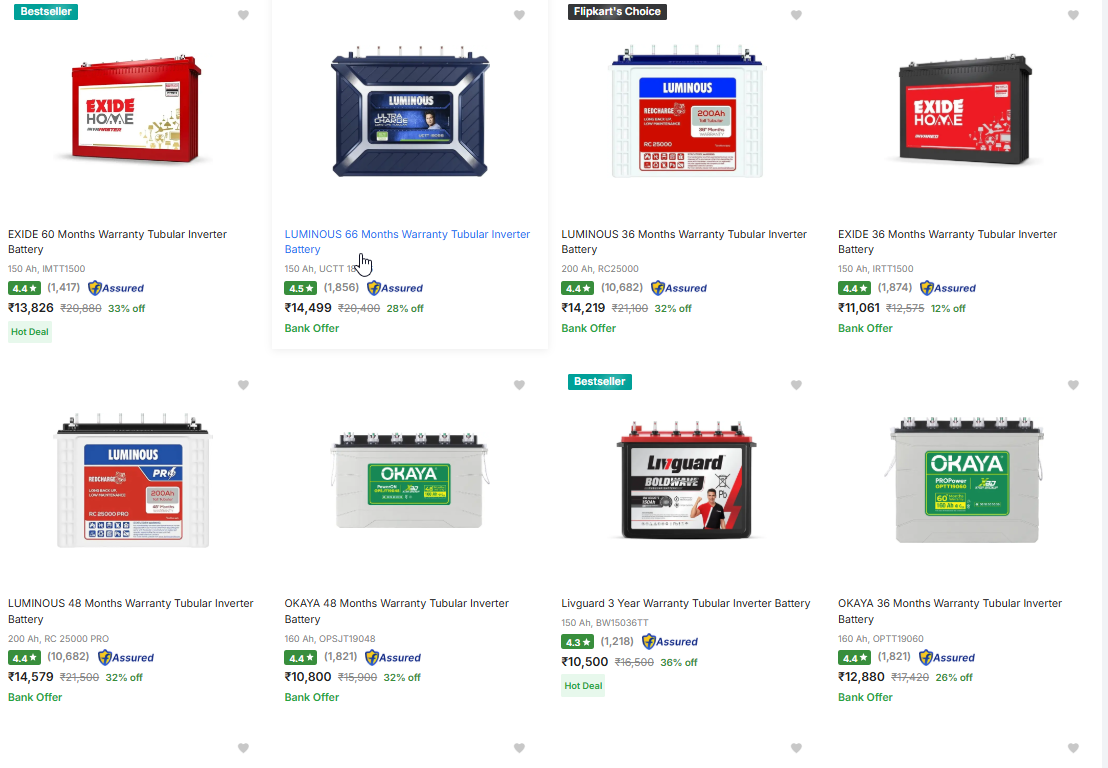 LUMINOUS 48 Months Warranty Tubular Inverter Battery (135 Ah, RC 16000 PRO)