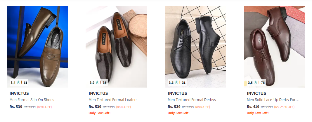Invictus Formal Shoes upto 88% Discount is available on Myntra.