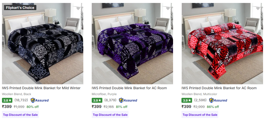 Iws Blankets at minimum 80% Discount is available on Flipkart.