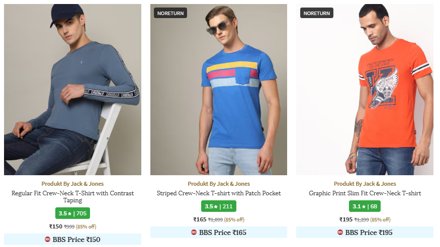 Jack And Jones Brand Men's Tshirts @ Up to 85% Discount, Available on AJIO.
