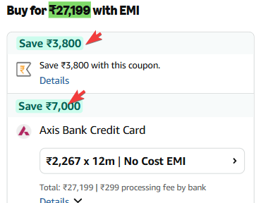 Incl. ₹2800 Off Axis CC + ₹3800 Off Coupon