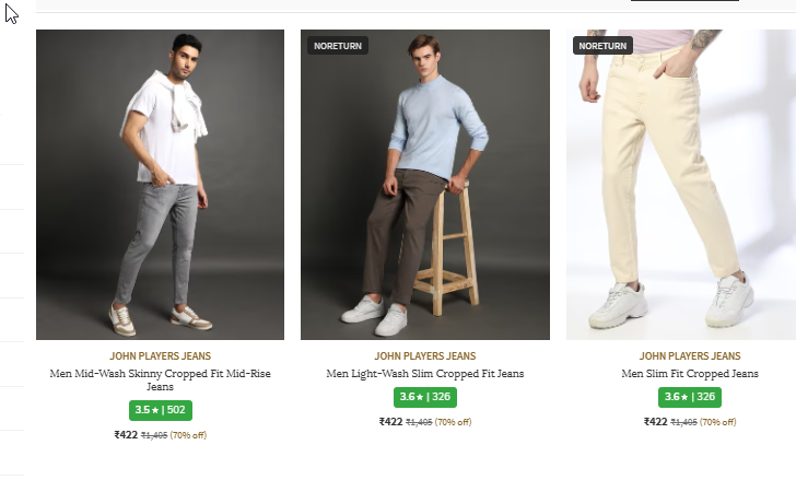 JOHN PLAYERS JEANS Minimum 70% Discount