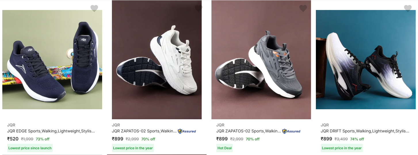 Jqr Men’s Sports Shoes upto 74% Discount is available on Flipkart.