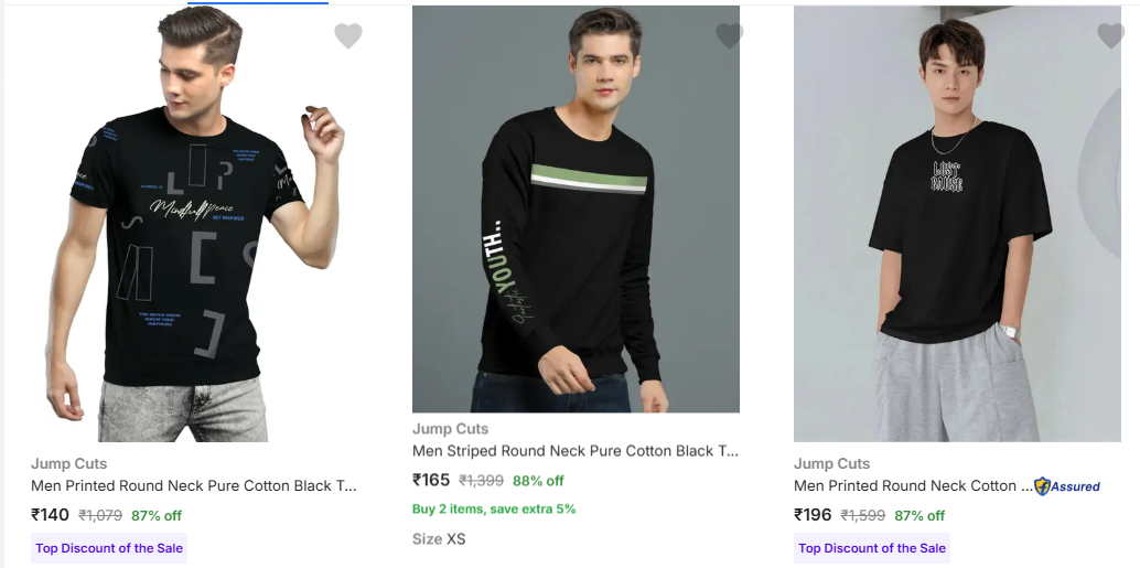 Jump Cuts Men T-Shirt Starting @ ₹140 Available on Flipkart